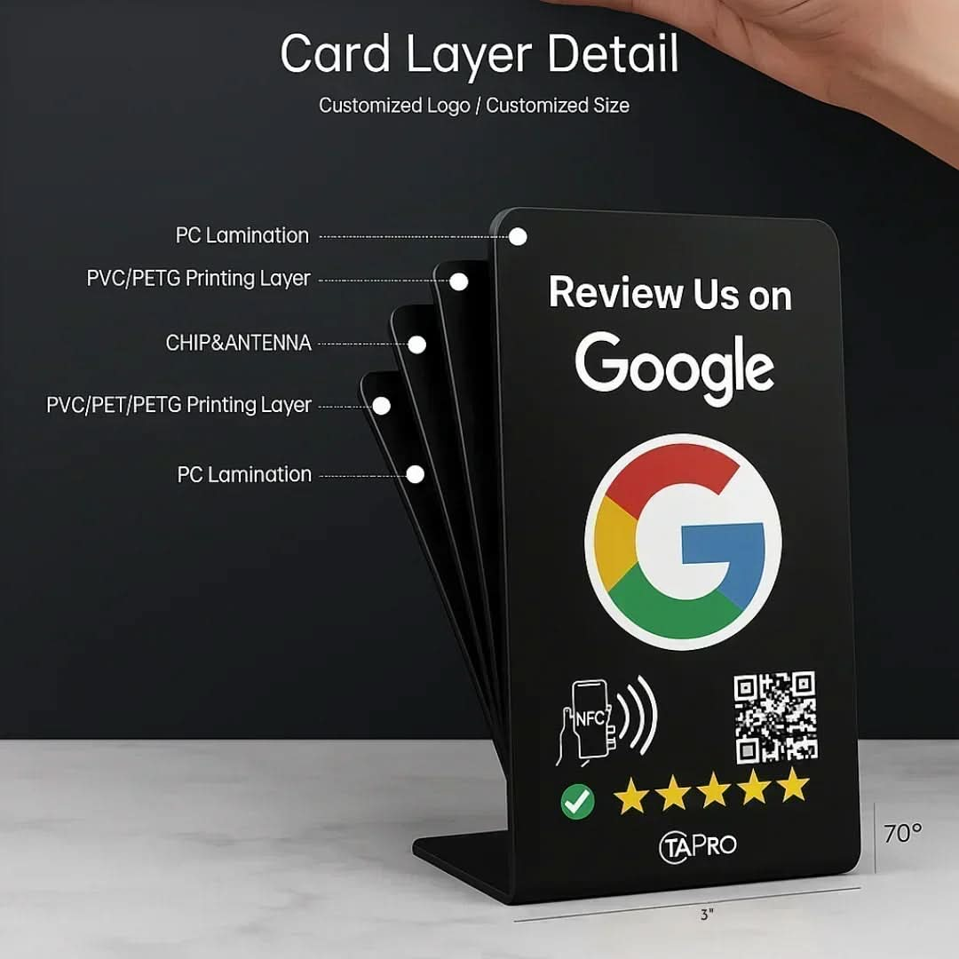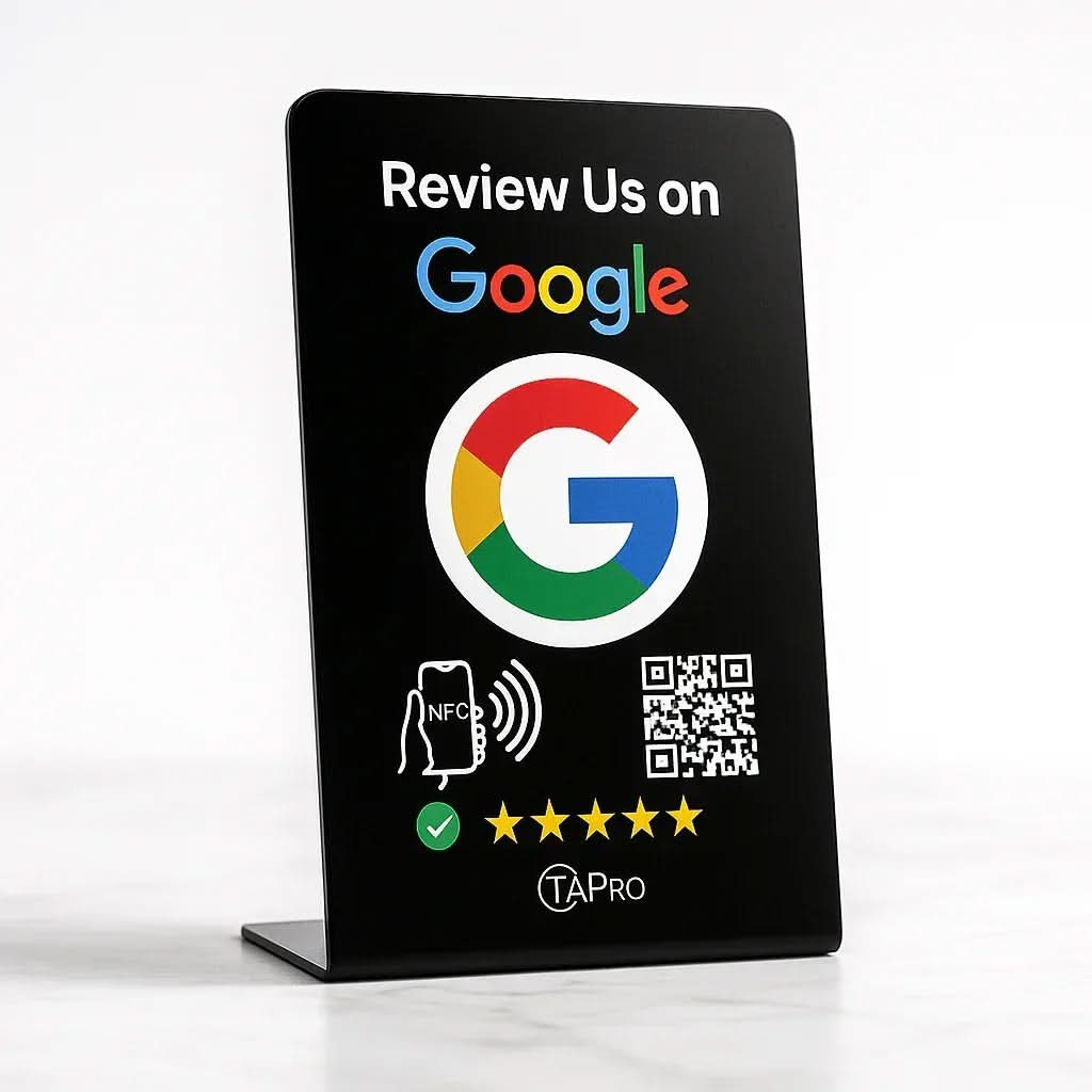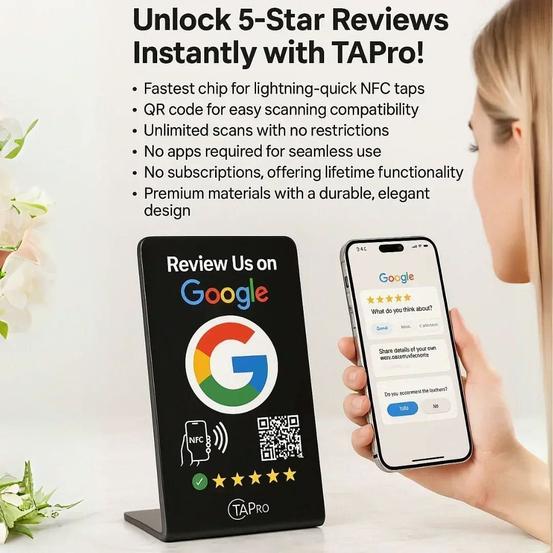 Transform your business with the NFC Google Review Stand from TAPro—the ultimate tool for instant 5-star reviews. Available in 7 vibrant colors and 13 stunning designs, our stands feature premium NTAG215 NFC and QR technology for seamless feedback. Crafted with durable, waterproof materials, TAPro stands require no apps or subscriptions. Tap or scan to boost your Google Business Profile, elevate local SEO, and drive sales in cities like New York, Miami, and Los Angeles.