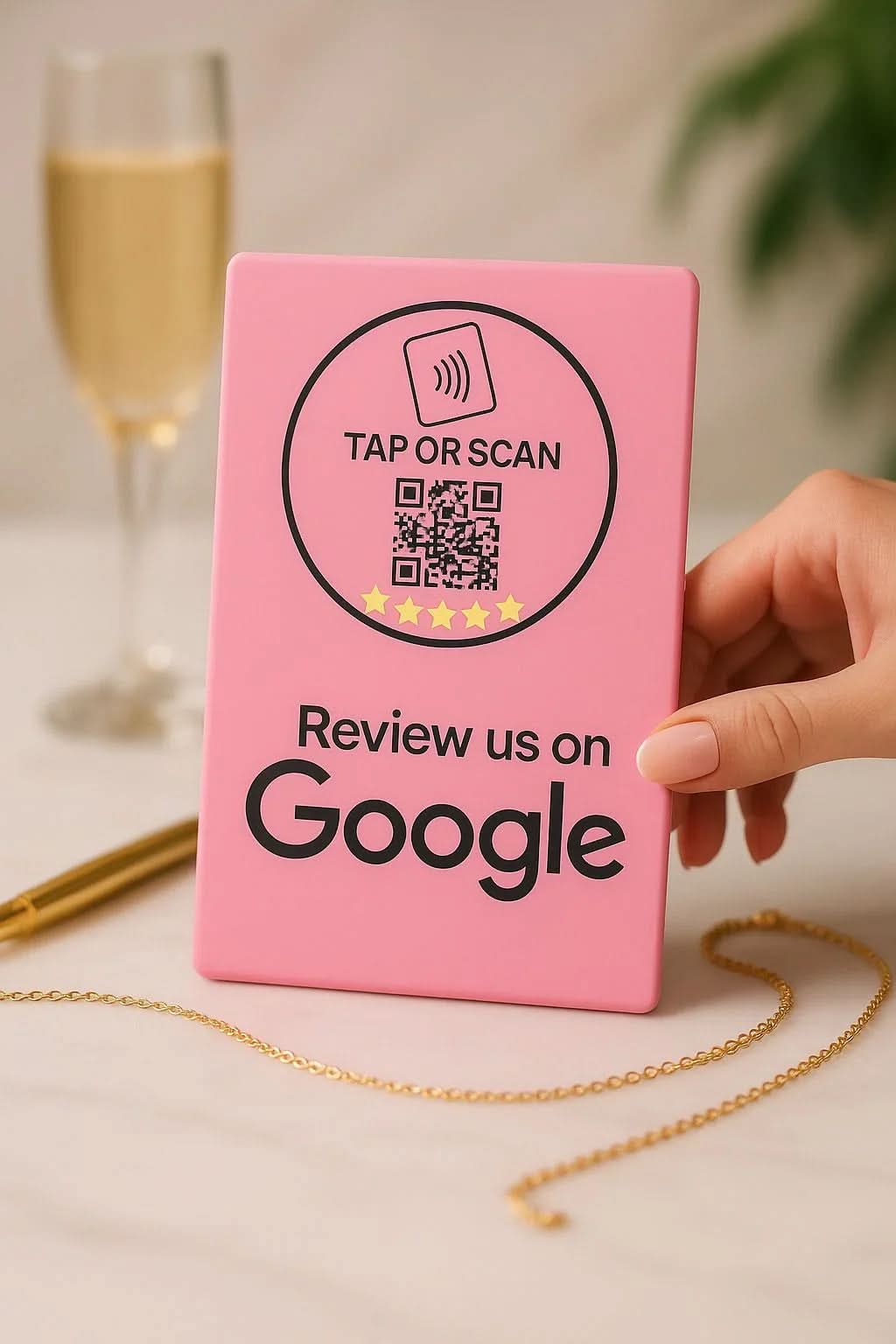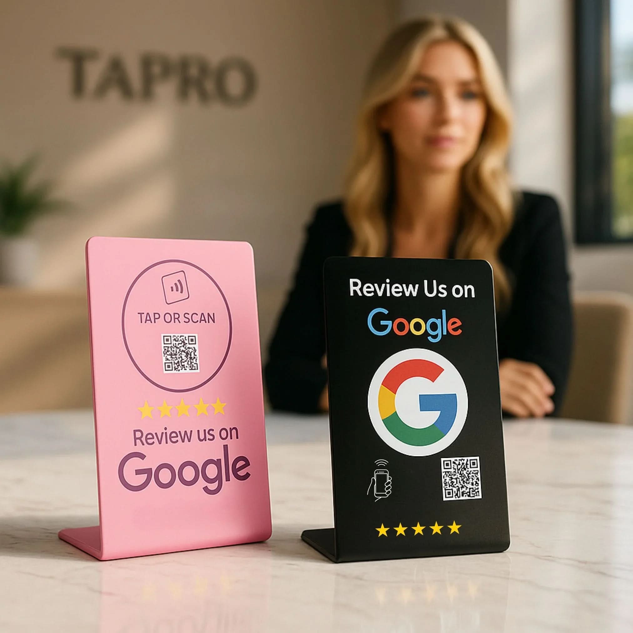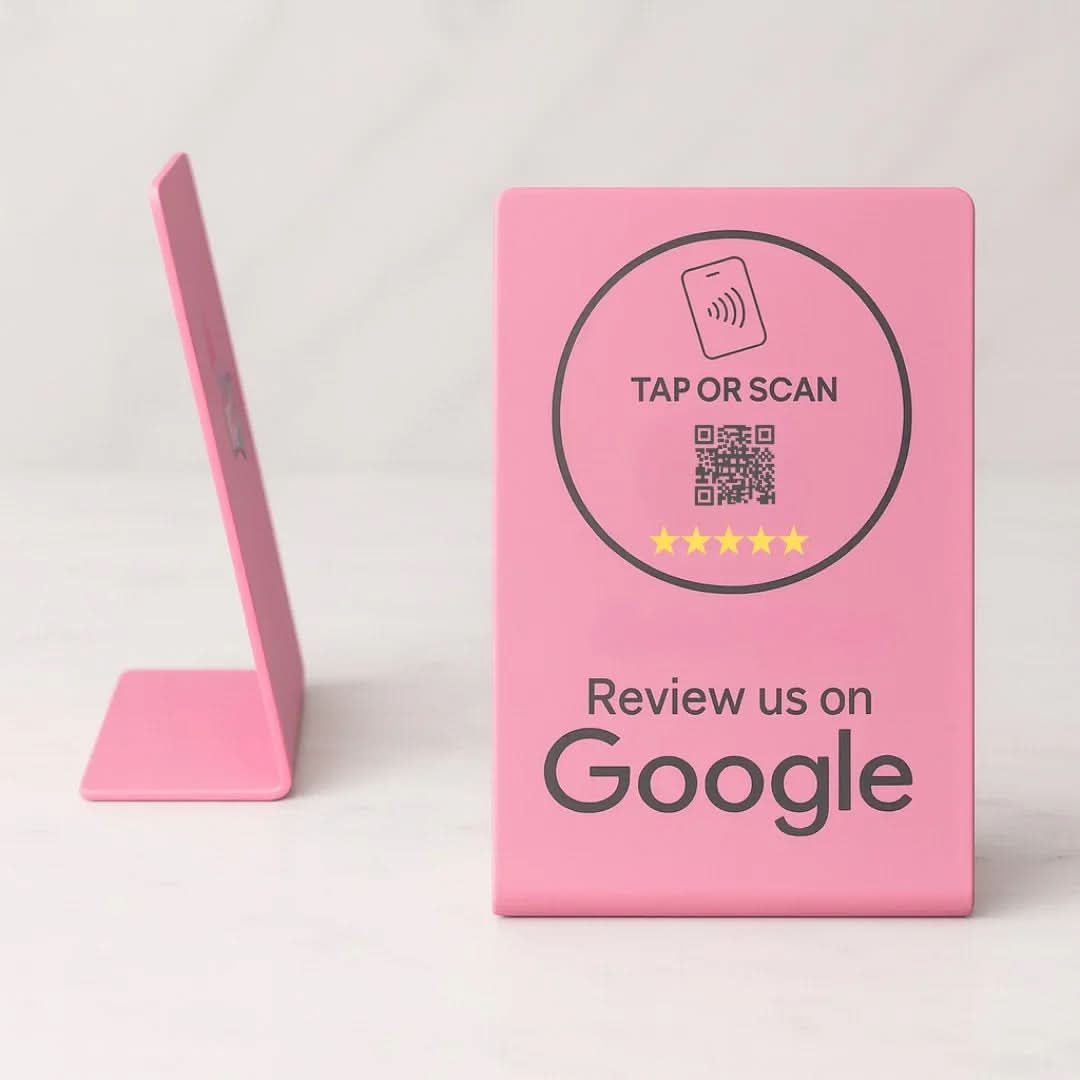 Transform your business with the NFC Google Review Stand from TAPro—the ultimate tool for instant 5-star reviews. Available in 7 vibrant colors and 13 stunning designs, our stands feature premium NTAG215 NFC and QR technology for seamless feedback. Crafted with durable, waterproof materials, TAPro stands require no apps or subscriptions. Tap or scan to boost your Google Business Profile, elevate local SEO, and drive sales in cities like New York, Miami, and Los Angeles.
